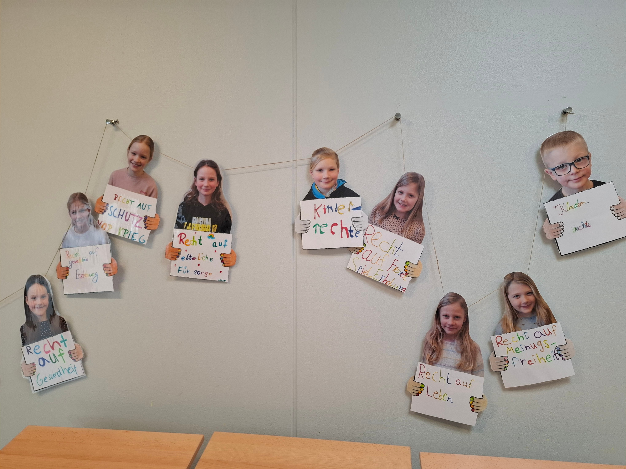Am Donnerstag fand die Präsentation der vergangenen Entdeckerzeit statt, welche sich in den Wochen zuvor alle mit den Themen "Kinderrechte" , "Kinder früher - heute" und "Kinder in anderen Ländern" beschäftigten. Diese Themen erschienen für viele Kinder zunächst schwierig. Um so schöner war es zu sehen, wie nach und nach tolle Ideen passend entstanden. So wurden Filme gedreht, die "wichtigsten" Kinderrechte plakativ präsentiert, ein Fußballfeld wie bei den ärmeren kindern in Afrika nachgebaut, Bücher geschrieben und viele Plakate mit unterschiedlichen Inhalten erstellt. Die Kinder lernten viel in diesen Wochen und staunten bspw. sehr über den damaligen Umgang mit Kindern oder auch darüber, dass es in anderen Ländern leider nicht so schön ist, wie bei uns.